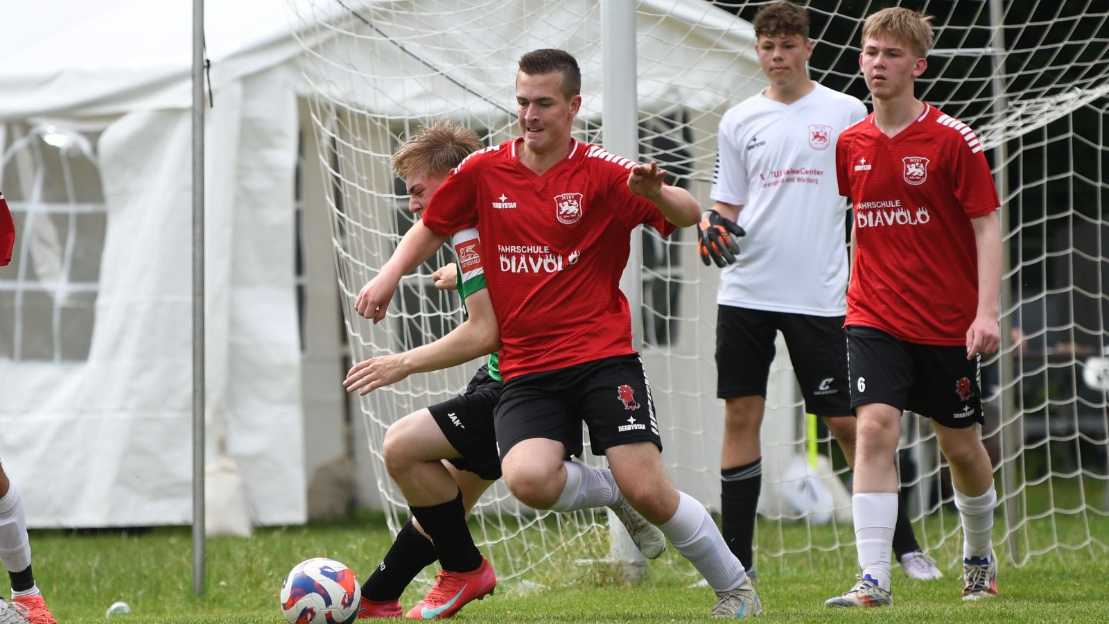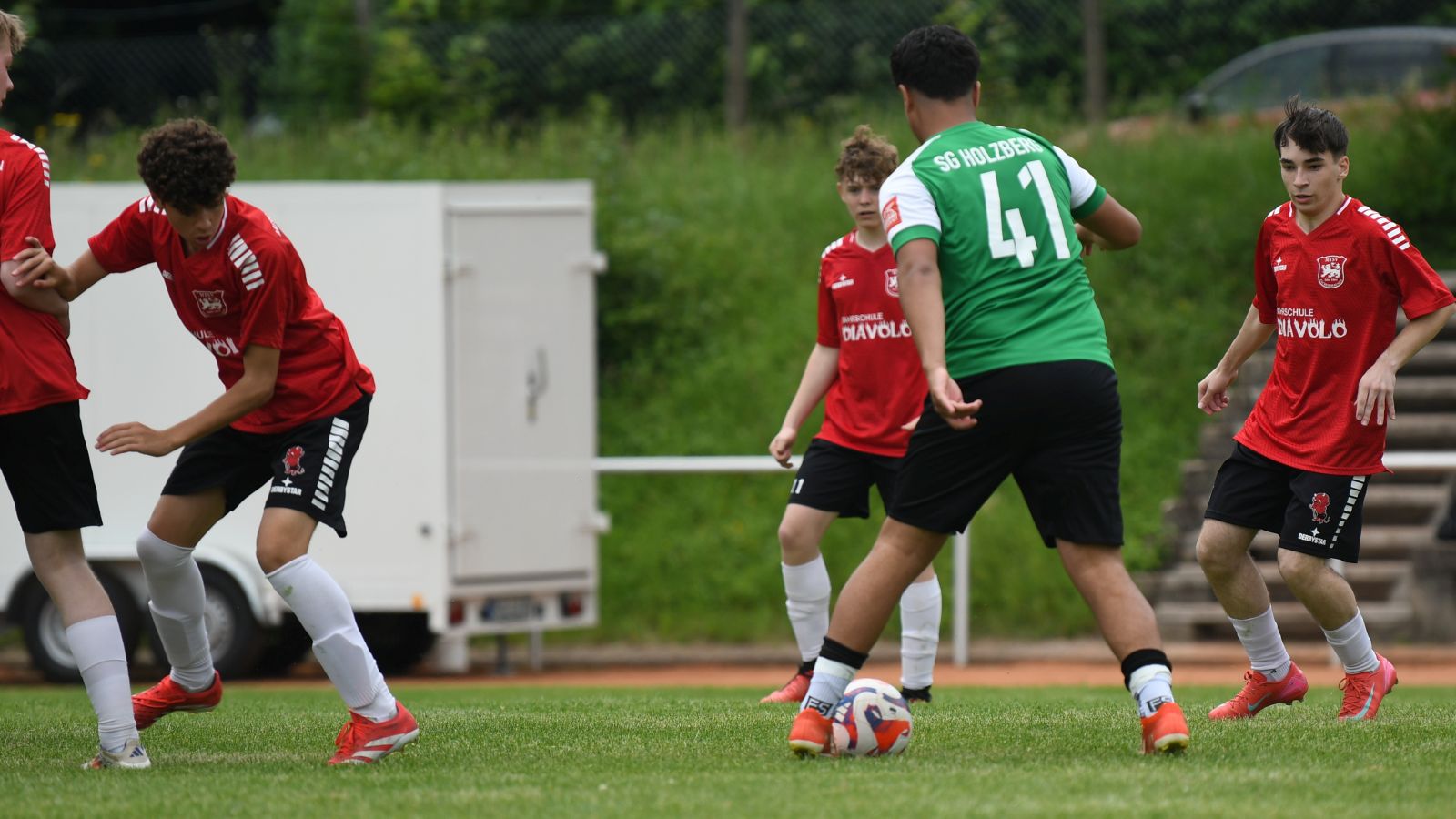 Ansonsten stand die Defensive vom Team von Christopher Simon sehr stabil und ließ nur wenige Torchancen zu. Sie überließen den Holzbergern den Ball und wollten mit Kontern Nadelstiche setzen. Dieses Vorhaben wäre gute vier Minuten vor der Halbzeit fast erfolgreich gewesen. Nach einer starken Einzelaktion setzte Jaden Menger den Ball knapp am langen Pfosten vorbei. Somit gingen die Mannschaften mit dem Spielstand von 1:0 in die Pause.