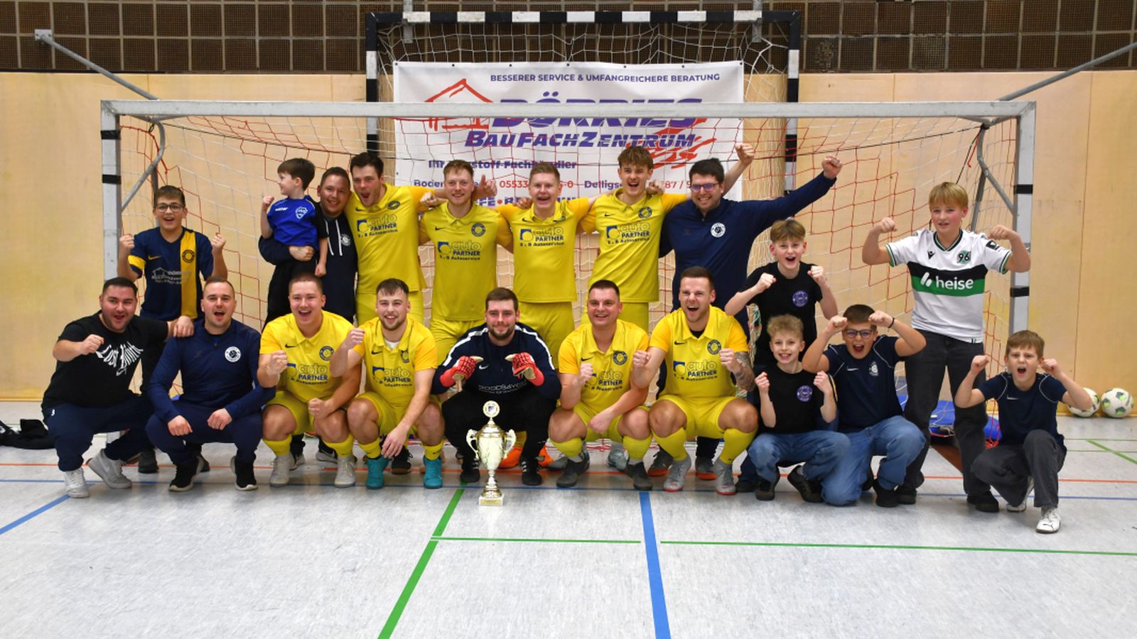 Delligsen (mm). Richtig spannend ging es am heutigen Sonntagnachmittag in der Delligser Sporthalle zu. Nach dem Altherrenturnier (Nachbericht folgt) stand die Endrunde des diesjährigen Kaierder Hallenturniers der Herren an. Im Halbfinale setzten sich mit dem TuSpo Grünenplan und dem TSV Föhrste die jeweiligen Gruppenzweiten durch und trafen schließlich im Finale aufeinander. Nach einem 0:2-Rückstand rettete sich Grünenplan mit einem 2:2 ins Neunmeterschießen, welches die Mannschaft von Philipp Meyer schließlich auch gewinnen sollte.