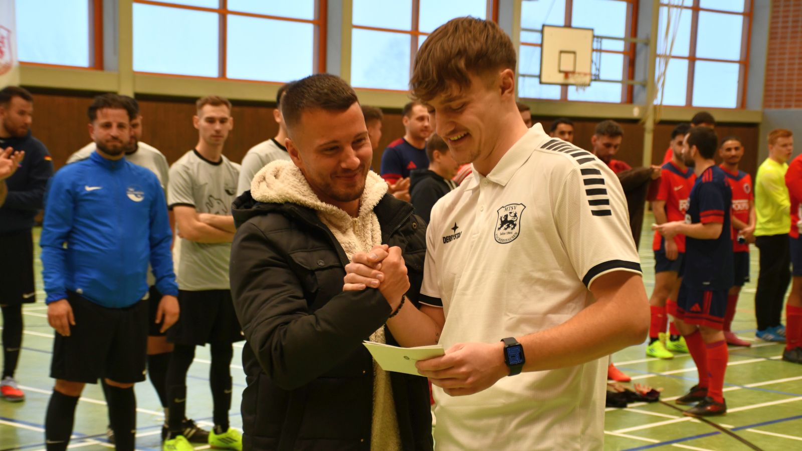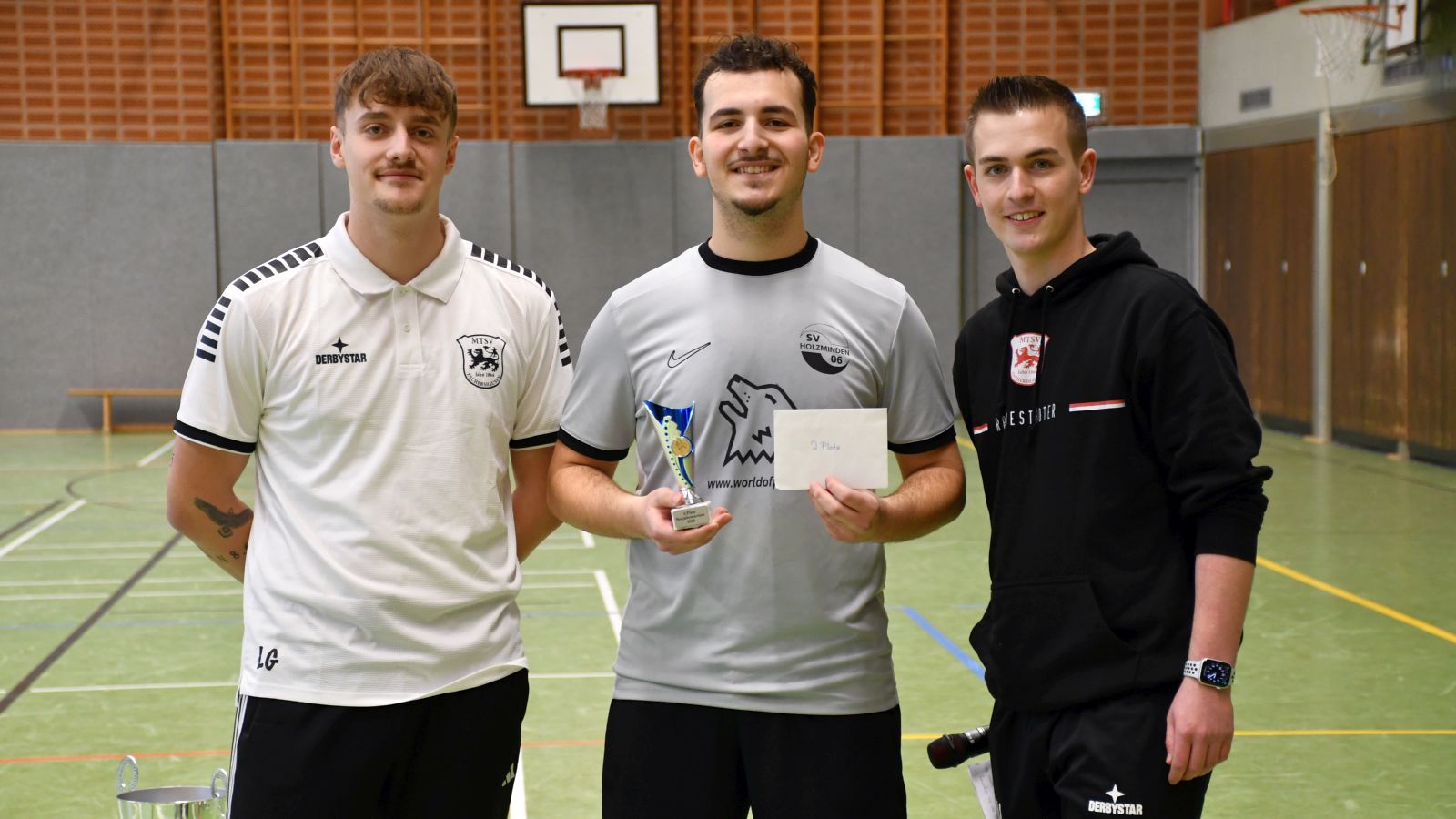 Im Anschluss nahm der Ausrichter die Siegerehrung vor und bedankte sich bei seinem Team für die Ausrichtung des Turnier. Nachdem die Pokale für die ersten drei Teams überreicht waren, wurden auch in diesem Jahr wieder persönliche Auszeichnungen verliehen. Bester Torschütze des Turniers wurde Rene Dela-Bursi vom TuS Marathon Hannover. Zum besten Torwart des Turniers wurde Baran Demir vom SV06 Holzminden II gewählt. Als bester Spieler des Turniers wurde Pascal Brogle vom VfB Uslar ausgezeichnet.