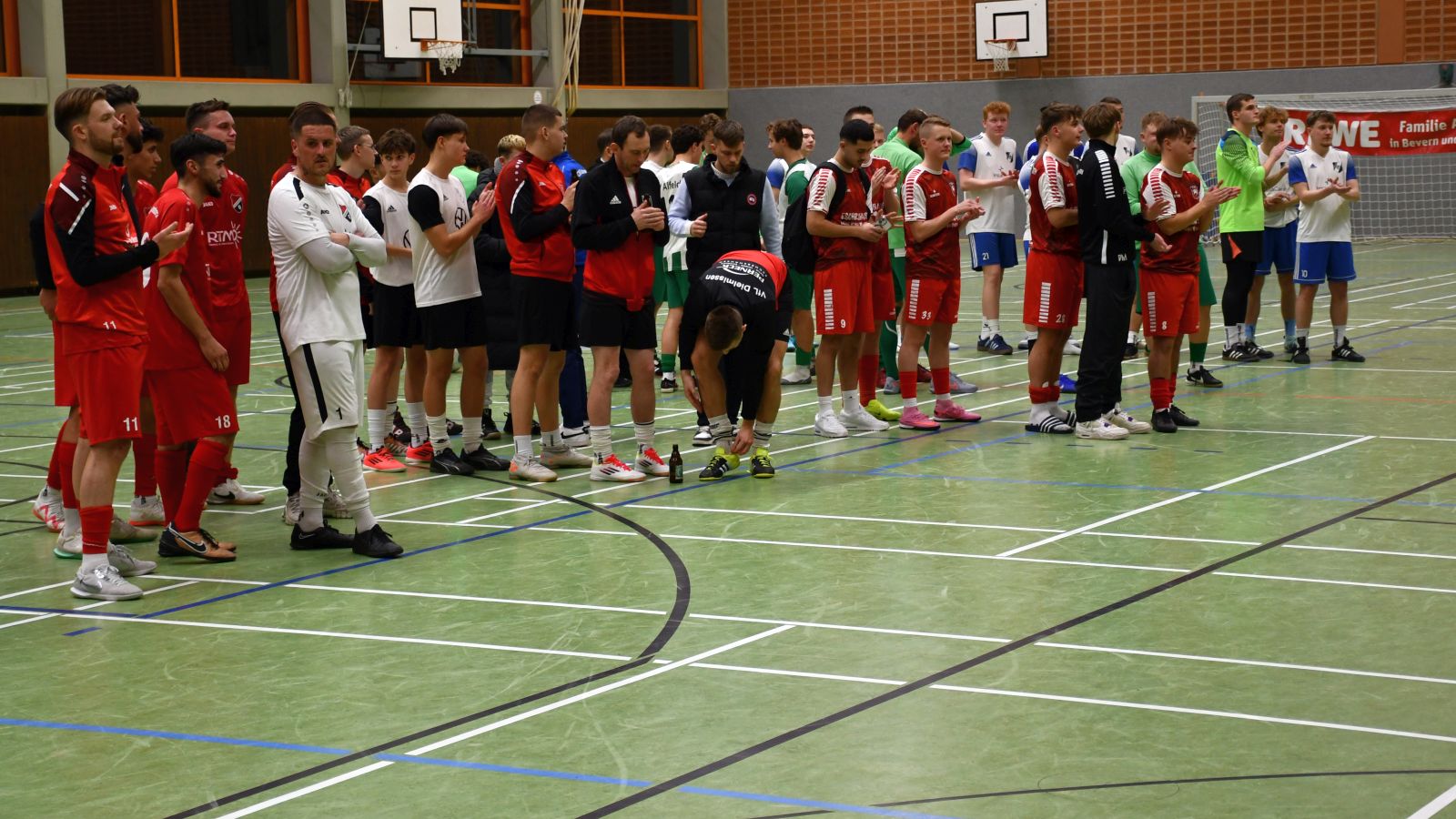 Am gestrigen Samstagabend gingen in der Eschershäuser Sporthalle mit dem FC Stadtoldendorf, dem VfL Dielmissen, dem FC Stadtoldendorf, der SG Wesertal und dem Gastgeber MTSV Eschershausen fünf Kreisligisten aus dem NFV-Altkreis Holzminden an den Start. Komplettiert wurde das Starterfeld durch den Hildesheimer Kreisligisten TSV Deinsen und den Bezirksligisten SV Alfeld.